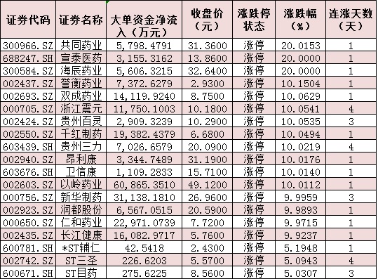 表:醫(yī)藥生物行業(yè)中19只漲停股情況