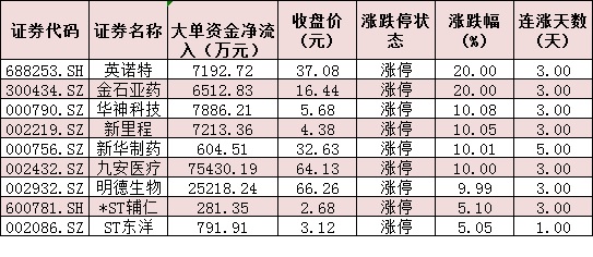 表:醫(yī)藥生物行業(yè)中9只漲停股情況:
