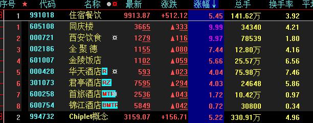 具體看,截至12月14日上午收盤,住宿餐飲板塊直線拉升,漲幅居首達(dá)5.45%。其中,西安飲食、同慶樓等概念股聯(lián)袂漲停。西安飲食三連板。