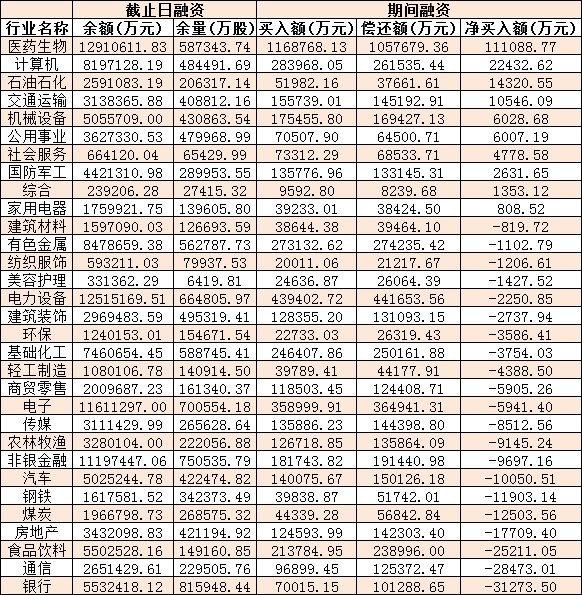 表:12月13日申萬一級行業(yè)兩融交易情況: