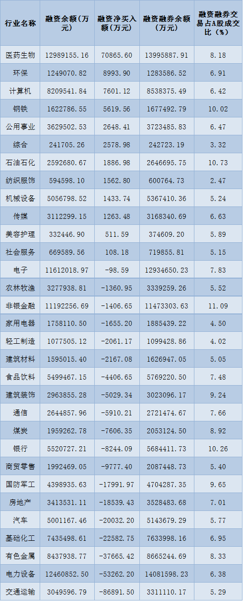 表:12月14日申萬一級行業(yè)兩融交易情況: