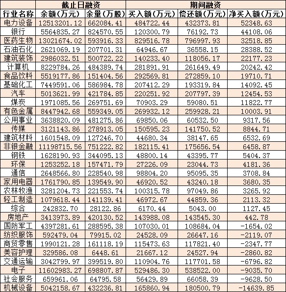 表:12月15日申萬(wàn)一級(jí)行業(yè)兩融交易情況: