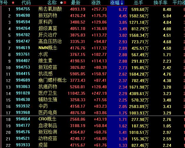 具體看,截至12月16日上午收盤,醫(yī)藥股表現(xiàn)搶眼,熊去氧膽酸(6.72%)、新冠藥物(4.45%)、原料藥(3.85%)等相關(guān)醫(yī)藥板塊漲幅居前。其中,廣生堂20CM漲停,新華制藥、眾生藥業(yè)、中國(guó)醫(yī)藥等多只醫(yī)藥股聯(lián)袂漲停。