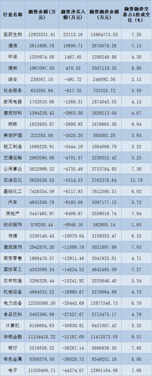 表:12月21日申萬一級行業(yè)兩融交易情況: