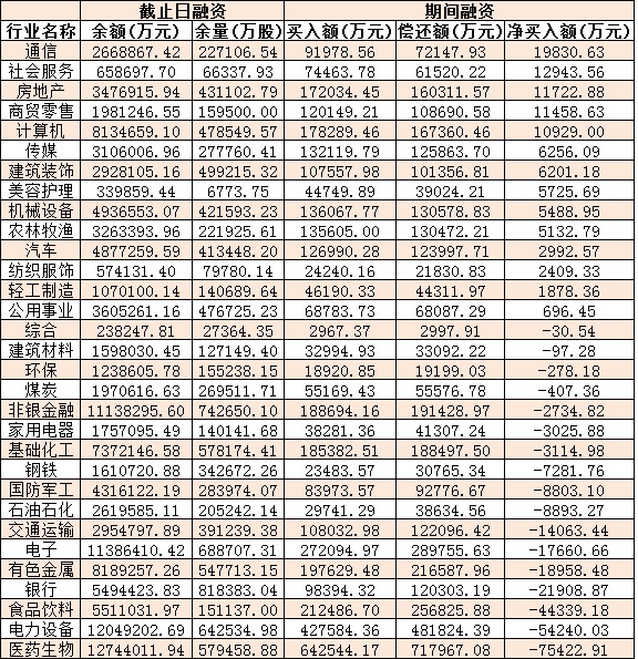 表:12月27日申萬(wàn)一級(jí)行業(yè)兩融交易情況: