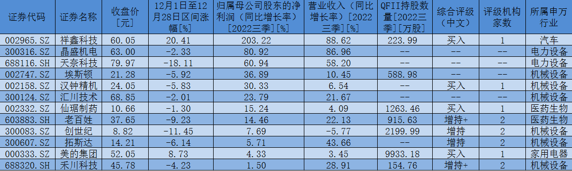 表:受10家及以上海外機(jī)構(gòu)調(diào)研公司中前三季度凈利潤實現(xiàn)同比增長公司一覽