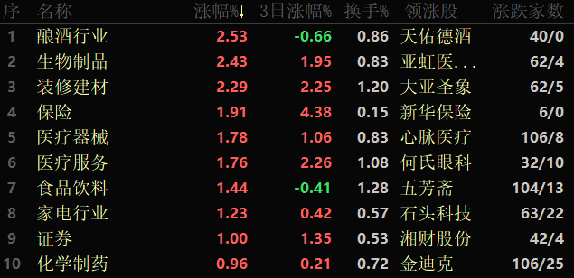東方財(cái)富行業(yè)方面,截至1月13日11:30,86類行業(yè)中48類上漲,占比55.81%,其中,釀酒行業(yè)漲幅居首,達(dá)2.53%,此外,生物制品和裝修建材行業(yè)漲幅也超過2%。下跌方面,電源設(shè)備行業(yè)跌幅居首,達(dá)1.65%。