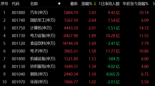 漲停股方面,今日有95只個股以漲停價報收,其中,有10只個股股價已連續(xù)上漲超過5個交易日。從申萬一級行業(yè)看,汽車行業(yè)漲停股數(shù)量居首,為17只,計算機與機械設備緊隨其后,漲停股數(shù)分別為15只和10只。跌停方面,有10只個股跌停價報收。