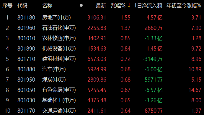 1月31日,行業(yè)板塊呈漲多跌少格局。從31類申萬一級行業(yè)看,有17類行業(yè)上漲,占比54.84%,14類行業(yè)下跌。漲幅方面,房地產(chǎn)行業(yè)居首達(dá)1.55%,大單資金凈買入4.57億元,此外,石油石化漲幅也超1%。跌幅方面,食品飲料行業(yè)居首,達(dá)2.44%,此外,還有包括計算機(jī)和醫(yī)藥生物等在內(nèi)的5類行業(yè)跌幅超1%。