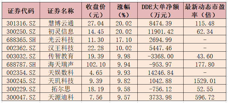 表:2月1日ChatGPT概念板塊漲幅排名前十的個股一覽