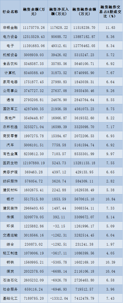 表:2月2日申萬一級行業(yè)兩融交易情況: