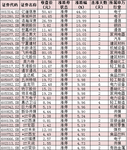 表:今日31只漲停個股交易情況: