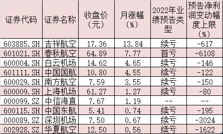 表:月內(nèi)股價(jià)實(shí)現(xiàn)上漲的機(jī)場航運(yùn)股一覽