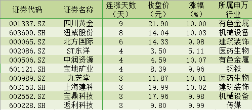 表:已連續(xù)上漲3日或以上且今日收盤漲停股一覽