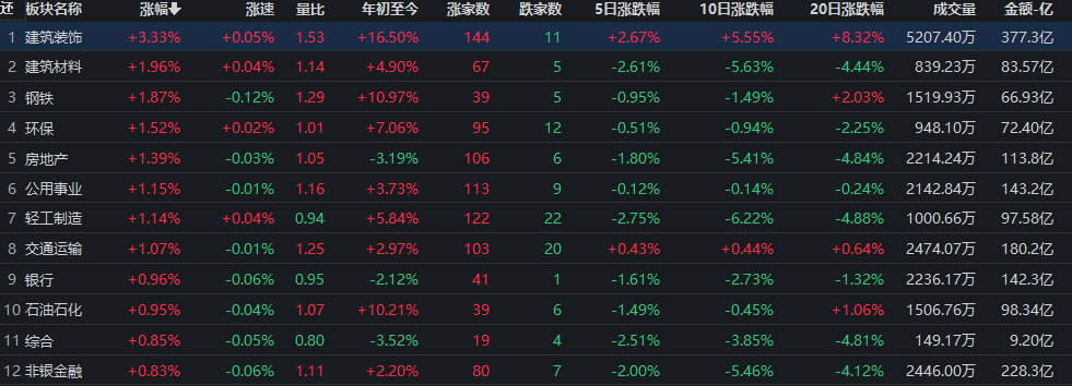 建筑裝飾行業(yè)漲超3%