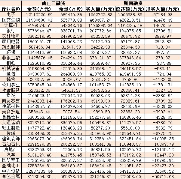 表:3月17日申萬一級行業(yè)兩融交易情況: