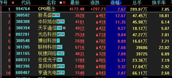 具體看,截至3月22日上午收盤,CPO概念板塊漲幅居首達7.67%。其中,新易盛、中際旭創(chuàng)等概念股漲幅均超10%。