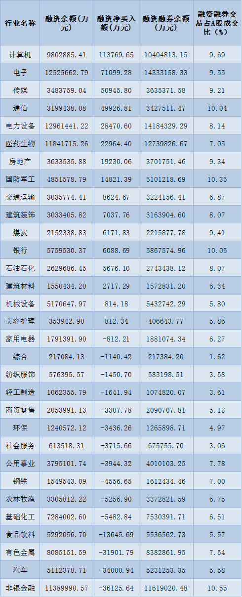 表:3月24日申萬一級行業(yè)兩融交易情況: