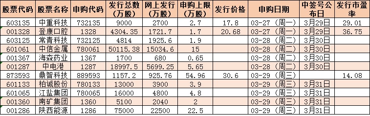 根據(jù)發(fā)行安排,下周(3月27日-3月31日)共有11只新股發(fā)行,其中滬市5只、深市5只、北交所1只。