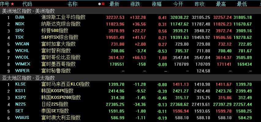 周五,美國(guó)三大股指全線收漲,道指漲0.41%報(bào)32237.53點(diǎn),標(biāo)普500指數(shù)漲0.56%報(bào)3970.99點(diǎn),納指漲0.31%報(bào)11823.96點(diǎn)。本周,道指漲1.18%,標(biāo)普500指數(shù)漲1.39%,納指漲1.66%。