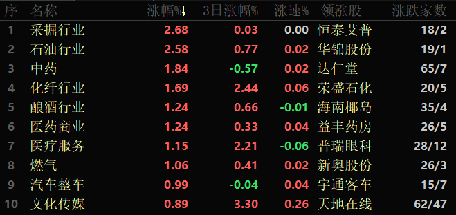 東方財(cái)富行業(yè)方面,截至3月28日11:30,86個(gè)行業(yè)板塊中32類(lèi)上漲,占比37.21%,其中,采掘和石油行業(yè)漲幅居前,均超2%,分別達(dá)2.68%和2.58%。下跌方面,半導(dǎo)體跌幅居首,達(dá)1.74%,另有包括電子化學(xué)品、能源金屬和電子元件等在內(nèi)的9個(gè)行業(yè)跌幅均超1%。