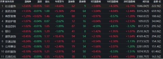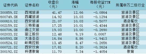 表:社會服務(wù)行業(yè)個股今日漲幅前十位一覽