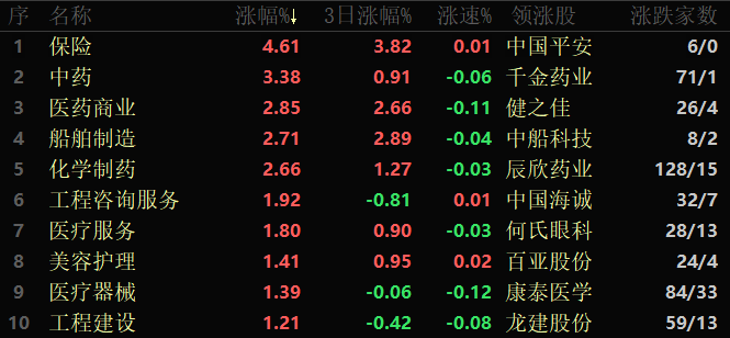 東方財(cái)富行業(yè)方面,截至4月27日11:30,86個(gè)行業(yè)板塊中42個(gè)上漲,占比48.84%,其中,保險(xiǎn)行業(yè)漲幅居前,達(dá)4.61%,此外,包括中藥、醫(yī)藥制造、船舶制造和化學(xué)制藥等在內(nèi)的4個(gè)行業(yè)漲幅均超2%。下跌方面,教育行業(yè)游戲居首,達(dá)3.75%,此外,光伏設(shè)備、消費(fèi)電子、文化傳媒、互聯(lián)網(wǎng)服務(wù)和通信設(shè)備等5個(gè)行業(yè)跌幅均超1%。