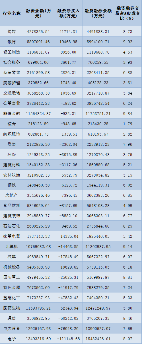 表:4月26日申萬(wàn)一級(jí)行業(yè)兩融交易情況: