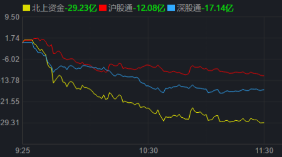 從資金面來(lái)看,4月27日上午,北上資金凈流出29.23億元,其中,滬股通凈流出12.08億元,深股通凈流出17.14億元。