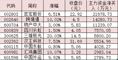表:5月9日受到2000萬元以上主力資金追捧的跨境電商概念股