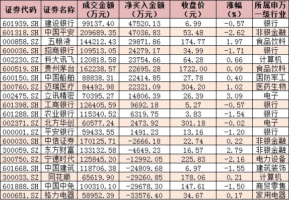 表:今日滬、深股通前十大成交活躍股交易情況: