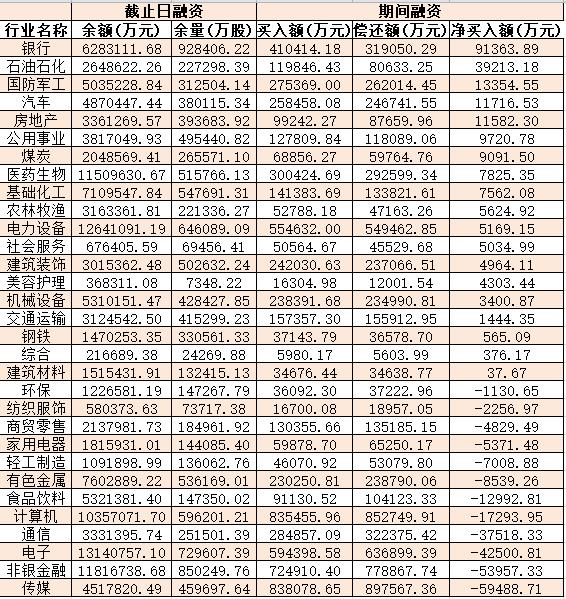 表:5月10日申萬一級(jí)行業(yè)兩融交易情況: