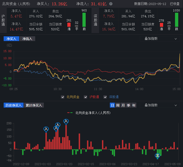 5月12日,A股三大指數(shù)集體收跌,滬指跌破60日均線,深證成指和創(chuàng)業(yè)板指也出現(xiàn)明顯回落。截至收盤,上證指數(shù)跌1.12%報(bào)3272.36點(diǎn);深證成指跌1.23%報(bào)11005.64點(diǎn),創(chuàng)業(yè)板指跌1.06%報(bào)2252.38點(diǎn),A股合計(jì)成交額8495.91億元,較前一交易日縮減5.32%,已連續(xù)兩個(gè)交易日不足萬億元;北向資金全天凈買入13.26億元;其中滬股通凈買入5.47億元,深股通凈買入7.79億元。今日A股漲少跌多,有1209只上漲,3790只下跌。
