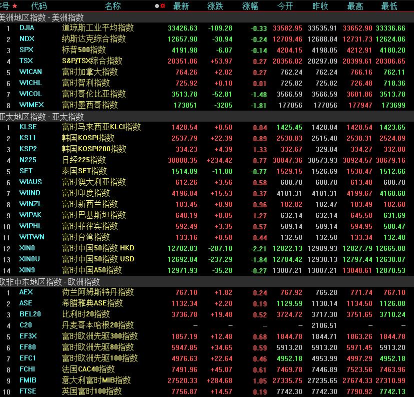 周五,美國三大股指小幅收跌,道瓊斯工業(yè)指數跌0.33%報33426.63點,本周累計上漲0.38%;標普500指數跌0.14%報4191.98點,周漲1.65%;納斯達克指數跌0.24%報12657.9點,周漲3.04%。