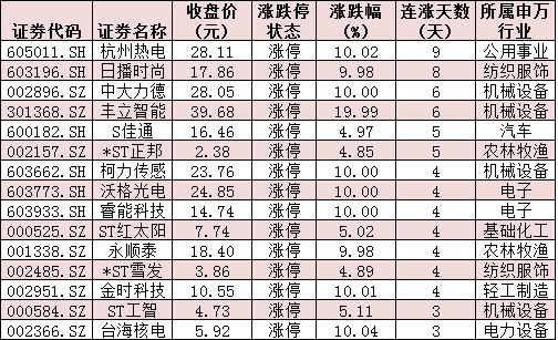 表:連續(xù)上漲3日且今日收盤漲停個(gè)股情況: