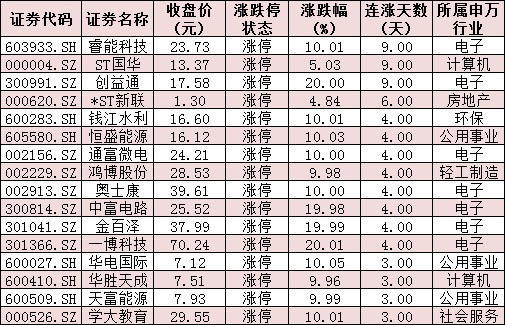 表:連續(xù)上漲3日且今日收盤漲停個(gè)股情況: