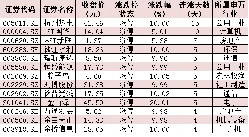 表:連續(xù)上漲4日且今日收盤漲停個股情況:
