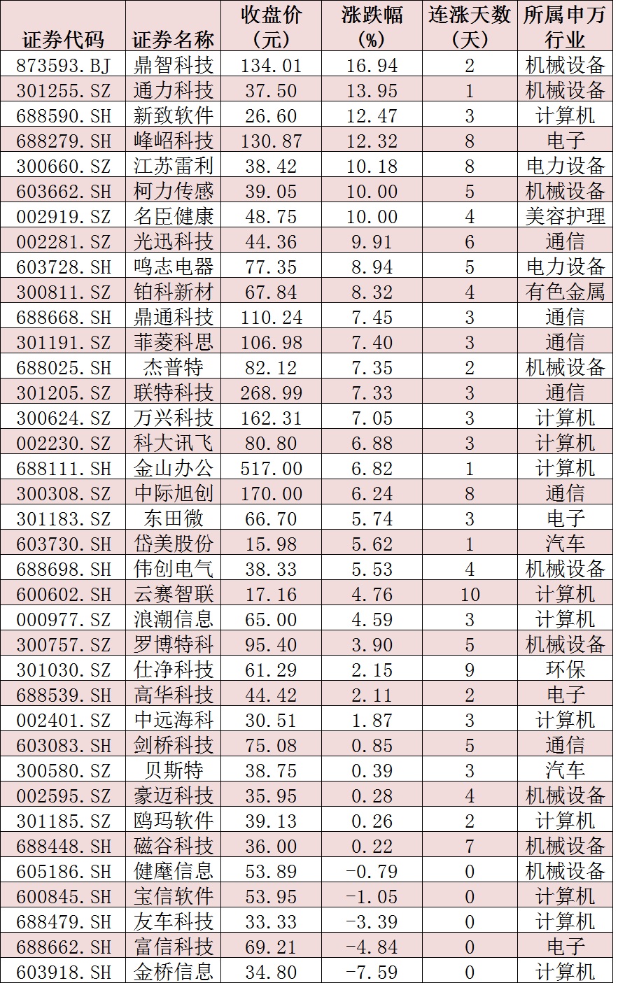 表:今日股價(jià)創(chuàng)出歷史新高的個(gè)股情況: