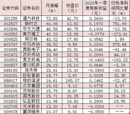 表:6月份以來累計漲幅超10%的減速器概念股