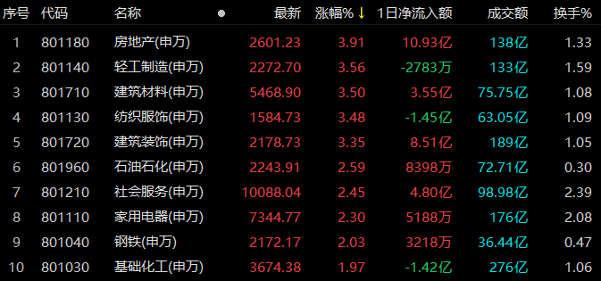 6月27日,行業(yè)漲多跌少,從31個申萬一級行業(yè)看,全線上漲,房地產(chǎn)行業(yè)漲幅居首,達3.91%,大單資金凈流入10.93億元,此外,包括輕工制造和建筑材料等在內(nèi)的4個行業(yè)漲幅均超3%。