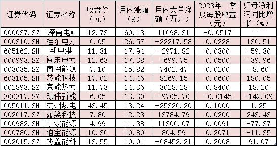 表:6月份以來累計(jì)漲幅超10%的電力股