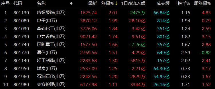 紡織服飾行業(yè)漲幅居首達(dá)2.01%