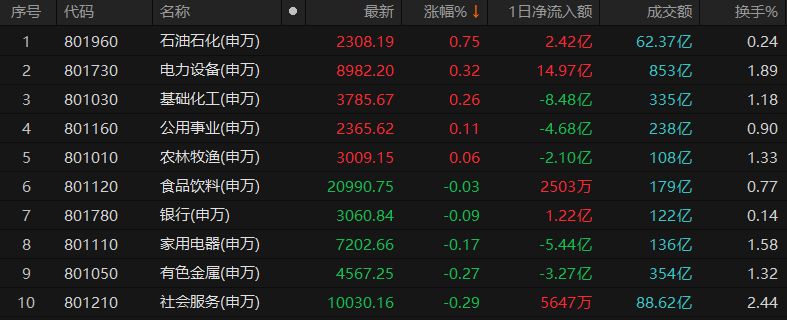 石油石化行業(yè)漲0.75%居首