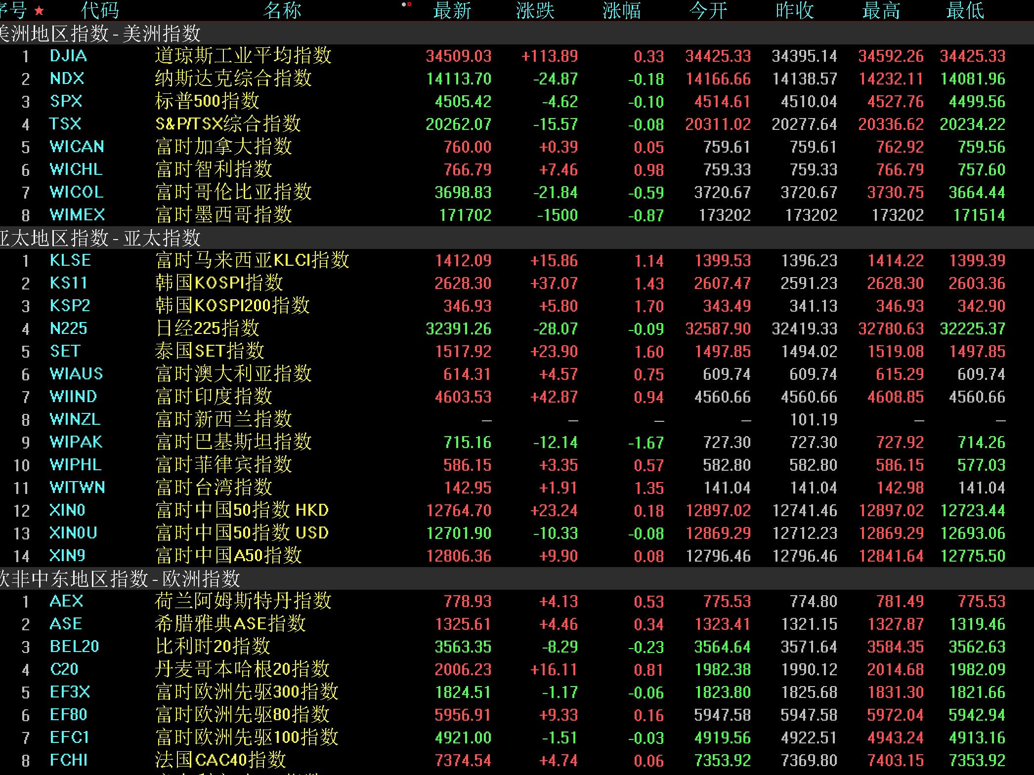 周五,美國三大股指收盤漲跌不一,道指漲0.33%報(bào)34509.03點(diǎn),標(biāo)普500指數(shù)跌0.1%報(bào)4505.42點(diǎn),納指跌0.18%報(bào)14113.7點(diǎn)。本周,道指漲2.29%,標(biāo)普500指數(shù)漲2.42%,納指漲3.32%。