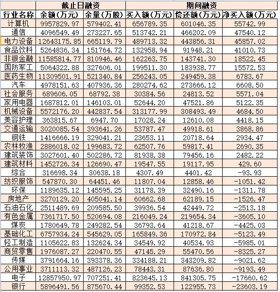 表:7月17日申萬一級行業(yè)兩融交易情況