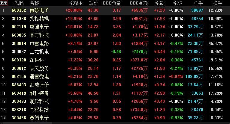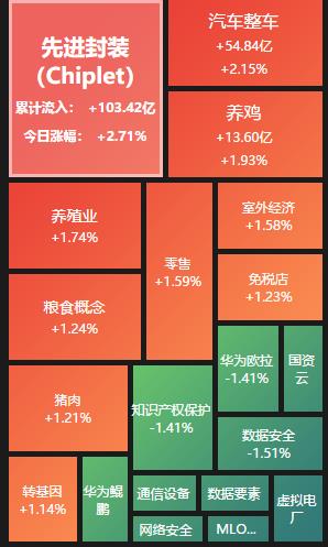 具體看,截至7月18日上午收盤,先進封裝板塊漲幅居首,達2.71%,資金凈流入達103.42億元。其中,甬矽電子、凱格精機等概念股均“20cm”漲停。