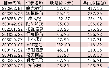 表:年內(nèi)累計漲幅超100%的算力股