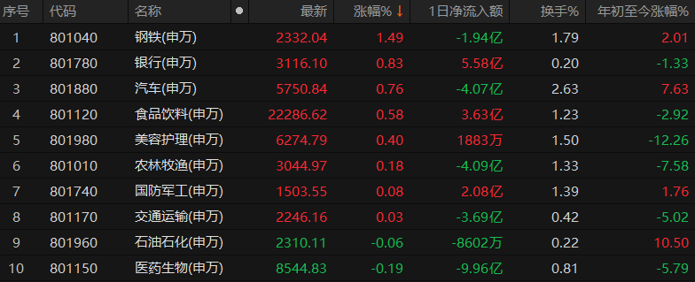 鋼鐵行業(yè)漲1.49%居首