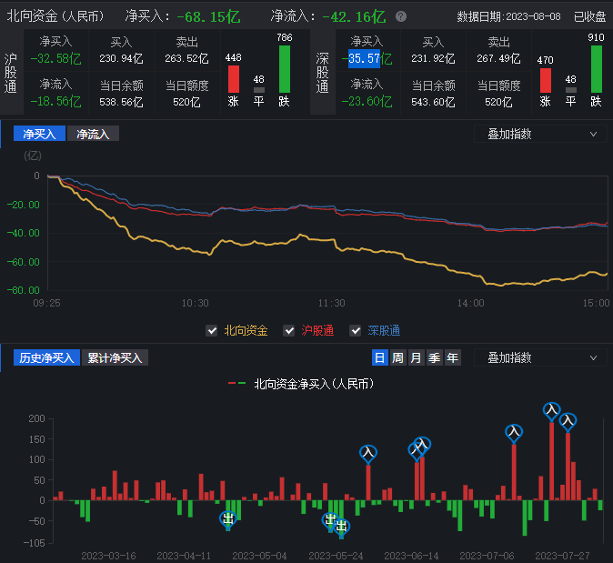 北向資金凈賣出逾68億元