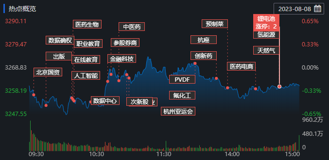 8月8日,A股早盤相對強勢,此后逐步震蕩回落。截至收盤,上證指數(shù)跌0.25%報3260.62點,深證成指跌0.42%報11098.45點,創(chuàng)業(yè)板指跌0.53%報2228.91點;A股合計成交額7997.47億元,較前一交易日減少10.24%;北向資金全天凈賣出68.15億元;其中滬股通凈賣出32.58億元,深股通凈賣出35.57億元。今日A股有2017只上漲,3002只下跌,漲跌比為0.67。